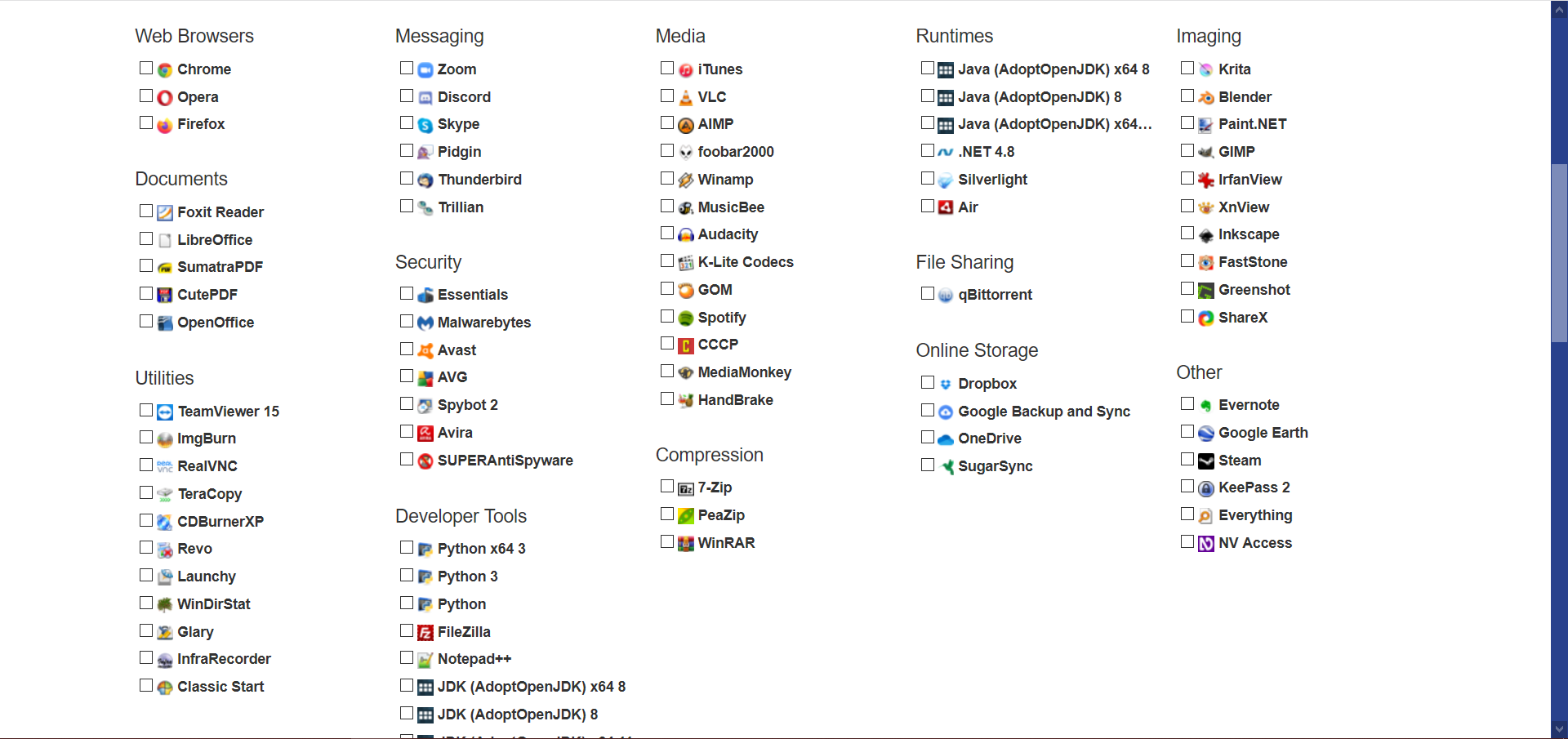 The easiest way to download TeamViewer is to start by visiting www.ninite.com. Visiting the website will bring you to the homepage of the website. Scroll down to view the list of items you can download: