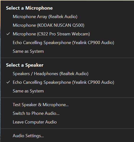 If your webcam has a microphone, select the current model of the webcam for the microphone.