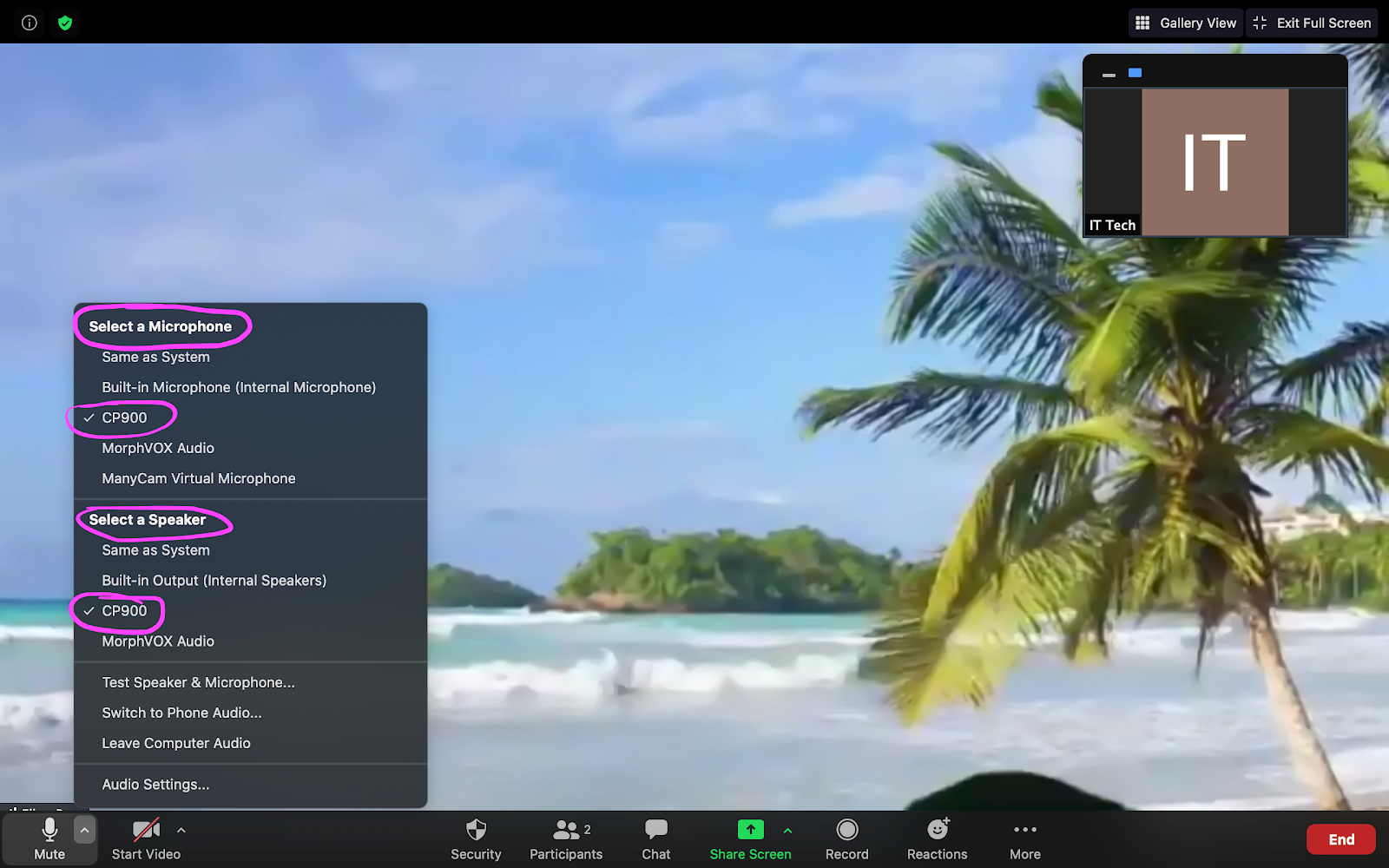 Click here to watch a video tutorial on how to a Document Camera and USB Speakerphone with Zoom!
