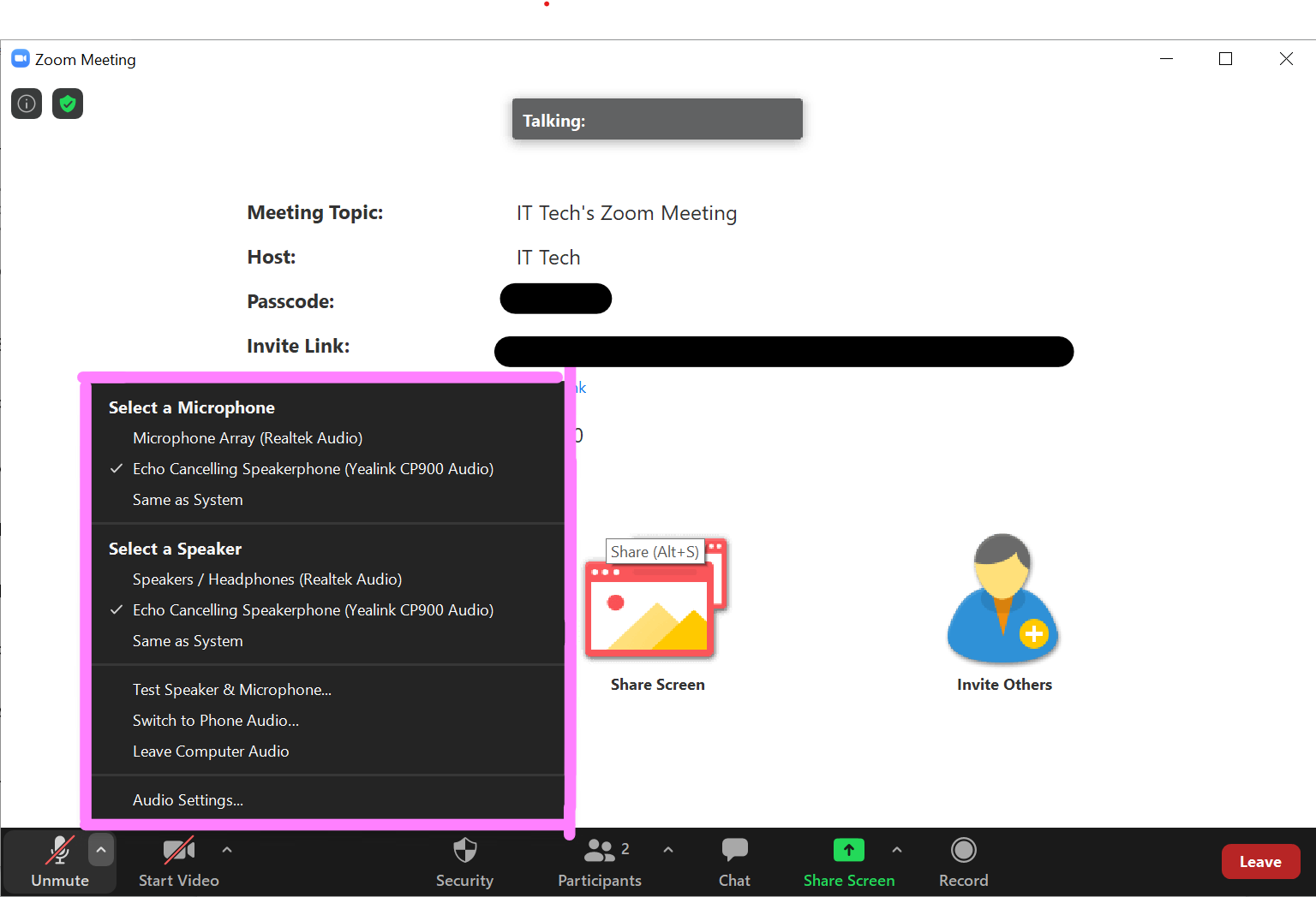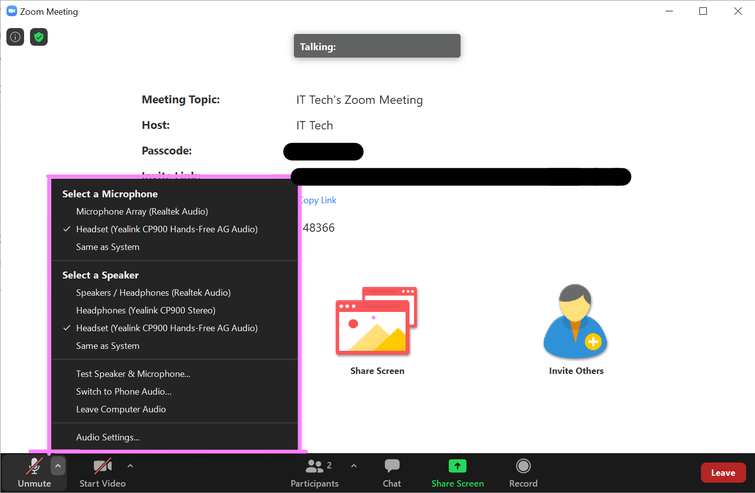 Once connected, find the bubble in the bottom left corner of your Zoom screen that says “Mute” or “Unmute”